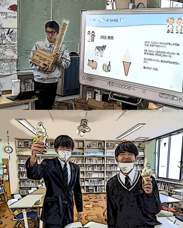 日世株式会社びわ湖工場より講師を招き”ソフトクリームを食べる授業”を実施しました。